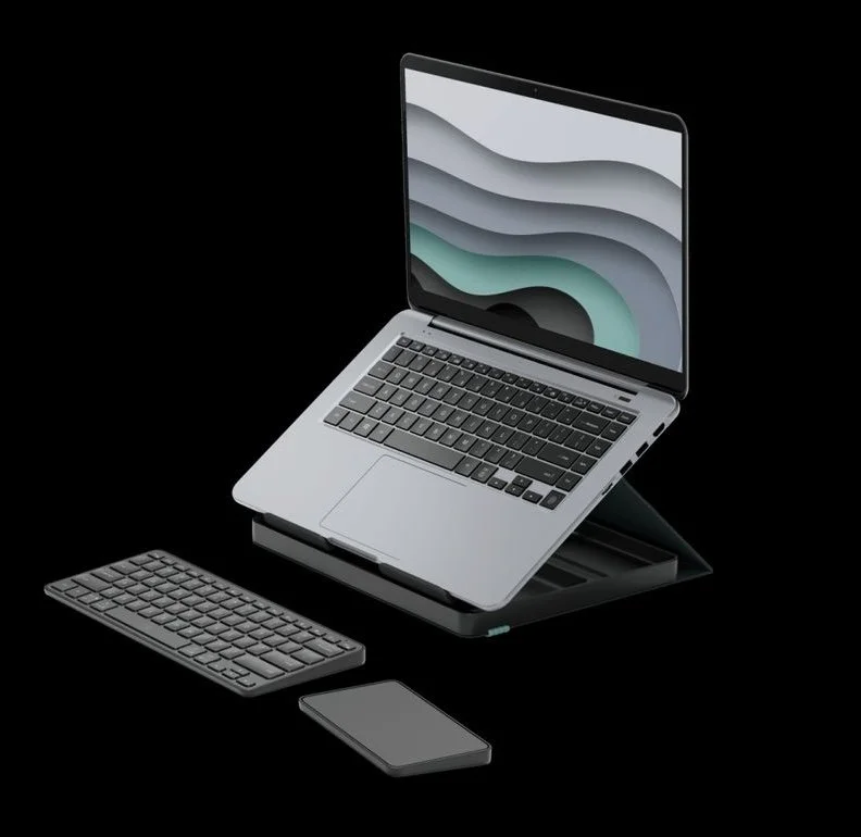 A pop up desk! It’s about the size of a coffee-table book and it prevents hunching while working from couch, coffee shop, or wherever.